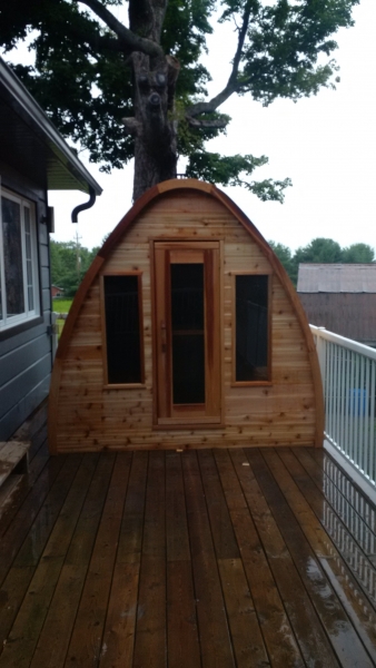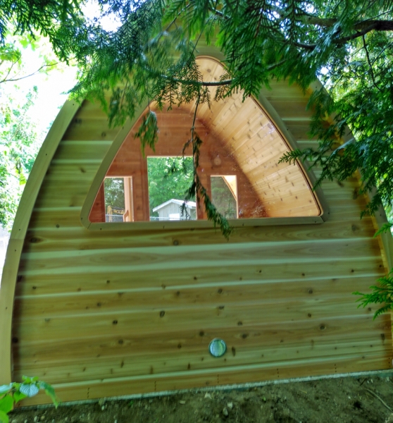 These organic rain-drop shaped outdoor POD saunas are the newest sensation to hit the sauna market.  The extra head-space and wonderful design come in various sizes and in both Clear Western Red Cedar and Knotty Red Cedar.