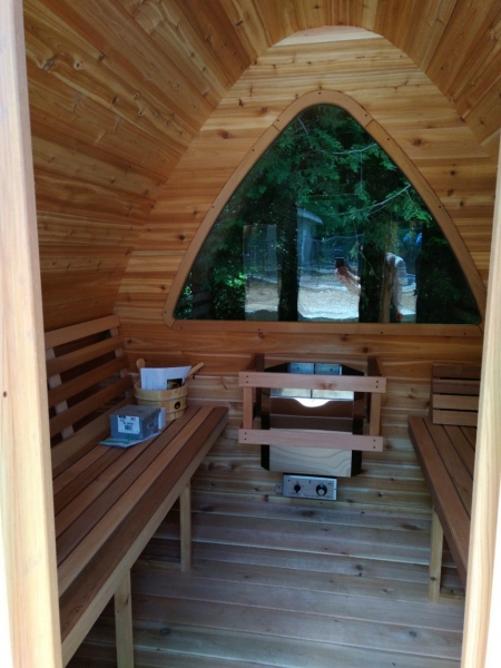 These spectacular rain-drop shaped outdoor saunas are the latest in wellness products!  The extra head-space and wonderful design comes in various sizes and handcrafted with Clear Western Red Cedar. Lots of options to choose from so you can customize your outdoor sauna to meet your special desires!
