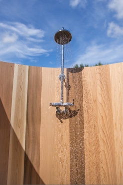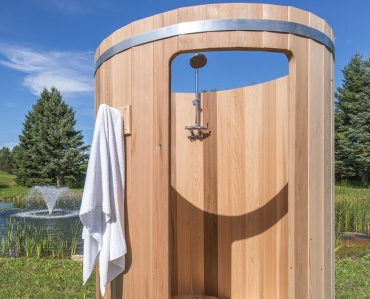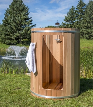 The deluxe Dundalk outdoor cedar barrel shower comes in a prefabricated kit that can be assembled in approximately 2 hours. The shower is great to use after your sauna session or a swim in the lake, ocean or pool to wash away sand, salt or chlorine. The shower can be plumbed for hot and/or cold only. Enjoy showering outdoors where the birds are chirping, the sun is setting across the lake or ambient city sounds quietly surround you in the background!