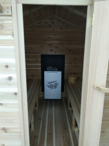 Available with Harvia M3 Wood Burning Sauna Heater, electric sauna heater or our own wood burning sauna heater.