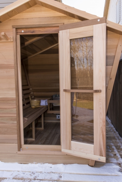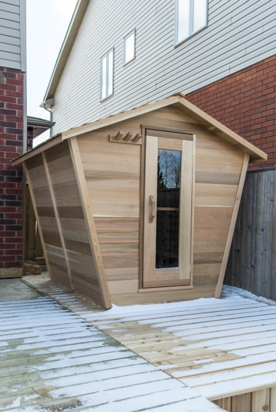 The Dundalk Eagles Nest Saunas are available in 3 common sizes and handcrafted with Clear Western Red Cedar only. The angled side wall design makes for comfortable sitting on the inside and efficient heating space. Choose from the many available options to customize your backyard sauna.